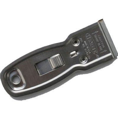 Professioneller Schaber zum Entfernen von groben Schmutzpartikeln und Folienresten von Glasflächen, ausgestattet mit einer 4 cm breiten Klinge.