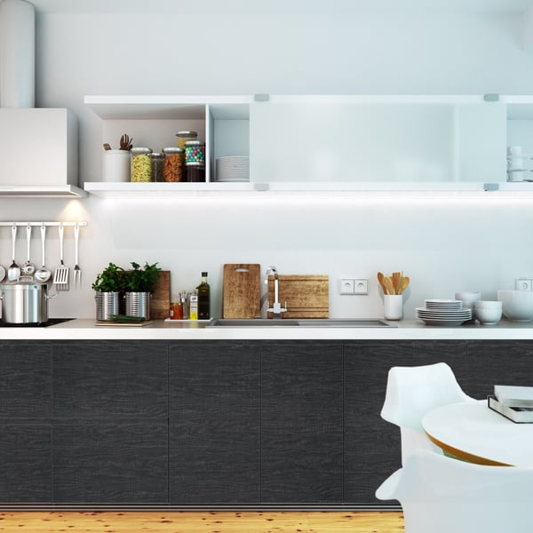 Die Klebefolie Perl Metall bringt mit ihrem dunkelgrauen bis anthrazitfarbenen Grundton und perlmuttartigen Linien ein außergewöhnliches Design in Ihre Räume. Ihre leicht glänzende, fühlbar geprägte Struktur passt perfekt zu modernen Einrichtungsstilen wie Scandi, Japandi, Art Deco oder Industrial.