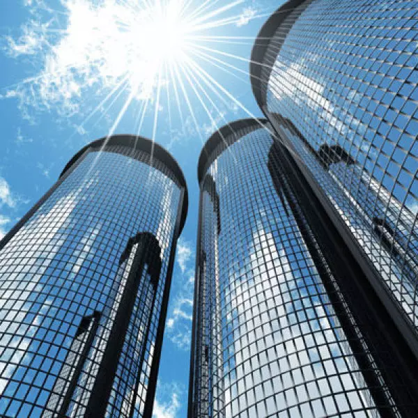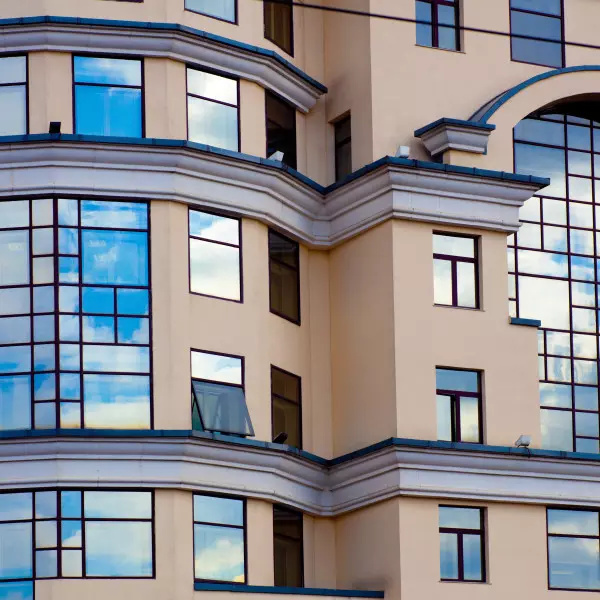 Dunkel getönte Sonnenschutzfolie zur Anbringung innen, bietet effektiven Schutz vor Sonne, Blendung, UV-Strahlen und Hitze. Von außen erzeugt sie einen starken Spiegeleffekt und sorgt so tagsüber für optimalen Sichtschutz in Innenräumen.