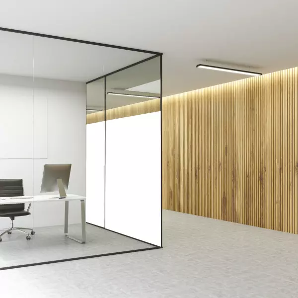 Eine glänzend weiße, blickdichte Verdunkelungsfolie zur Innenmontage bietet 100%igen Sichtschutz bei einer Lichtdurchlässigkeit von 10%.